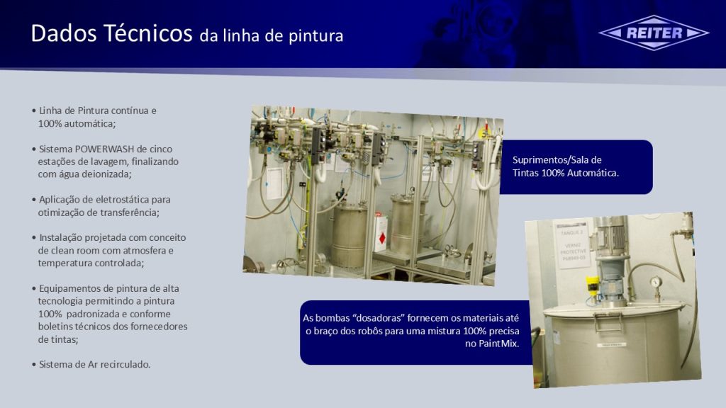 Os diferenciais desta linha de pintura incluem: baixo índice de rejeição de peças, alta taxa de transferência de tinta, garantia de aderência, alta qualidade de pintura, peças com geometria complexa podem ser pintadas e a rápida troca de cor reduz o custo final da peça.